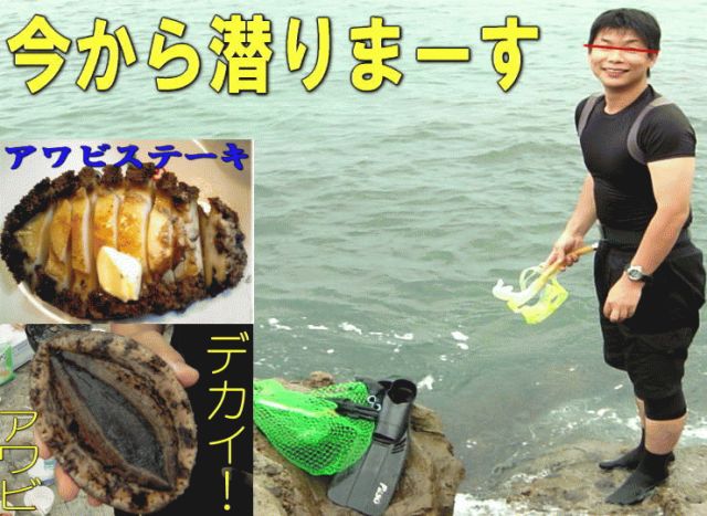 アワビ・サザエBBQツアー用パンフ作りました。 日程は6月30〜7月1日に決定 どんな所か少しでもイメージ出来るように 画像を載せます。 今回ツーリングではないので車です!バイクでも参加OK バイク乗れない人も参加可能です! イメージしてください。 当日到着後獲物を私が獲ってまいります。 その間に大自然に触れながら、バーベキュー開始 海の幸と共に楽しいひと時を・・・・ 温泉もあるのでカラダも癒して帰りましょう。 出発は朝6時半大阪出発帰宅時刻は9時頃です! 参加表明はこちら!