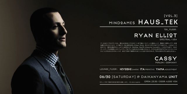 Matthew Dear率いるSpectral SoundのレーベルDJであるRyan Elliotのイベント告知をさせて下さい。