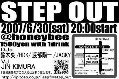 お待たせ致しました。次回ステップアウトが決定致しました! 特集は2ndアルバムFavourite Worst Nightmareの発売も記憶に新しく、オアシス以降のイギリス最大のバンドとも言われるアークティックモンキーズ!サマーソニック'07のヘッドライナーとしての来日も決まっているので、フェス気分を先取りするチャンスですよ! 他にも洋邦新旧問わずロックを中心に様々かけていくのでどうぞお楽しみに! 先着でプレゼントもあります☆ STEP OUT -Arctic Monkeys特集- 2007/6/30(sat) 20:00start 1500yen with 1drink @HONEYBEE(秋田市山王3丁