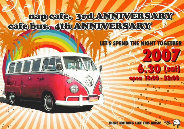 NAP CAFE 3周年(カフェバス4周年)パーティー 今年もユルユルなパーティーなので 気合いを入れずに、ボチボチと遊びにきてください♪ OPEN 18:00~22:00ごろ