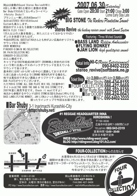 『Special Guest』BIG STONE -The Rockers Plantation Sound-