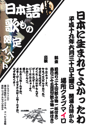 かなりふざけたイベントですが… マイロで初めてかかる曲ばかりになると思われます! 是非!!