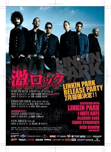 激ロックオフィシャルホームページをチェックしてくれている方はご存知かもしれませんが、7月にリンキンパークのオフィシャルリリースパーティー開催が決定しました!!!