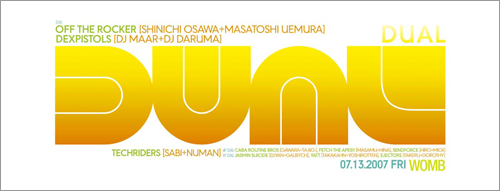 OPEN:23:00 当日:4,000yen / WITH FLYER:3,500yen DJ:OFF THE ROCKER(SHINICHI OSAWA×MASATOSHI UEMURA)、 DEXPISTOLS(DJ MAAR×DJ DARUMA)、 TECHRIDERS(SABI×NUMAN) and more… WOMB:渋谷区円山町2-16 Tel.03-5459-0039 INFO:FORM Tel.03-5773-0440 *20歳未満入場不可。要IDチェック。 FORWARD!!