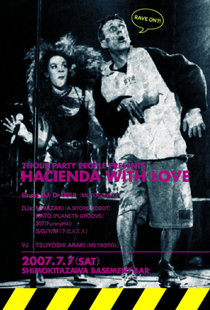 イギリス・マンチェスターにあった伝説のクラブ『HACIENDA』が「21世紀の東京にあったら…」をコンセプトに、映画『24HOUR PARTY PEOPLE』公開の2003年にスタート。本家の『HACIENDA』よろしく、80's〜90'sから最新の(中)ヒットナンバーまでフィーチャーした「孤高の」DJパーティー。ロック、テクノ、そしてマッド