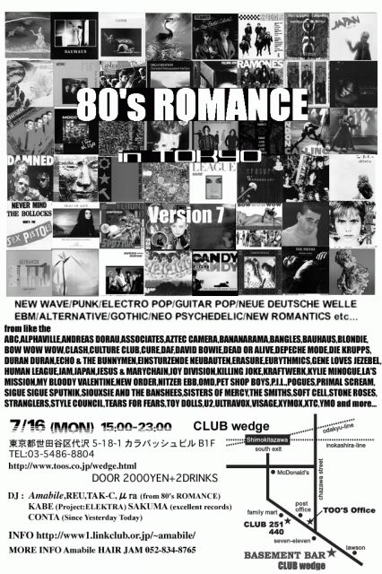 7/16(月)80's ROMANCE in TOKYO Version 7