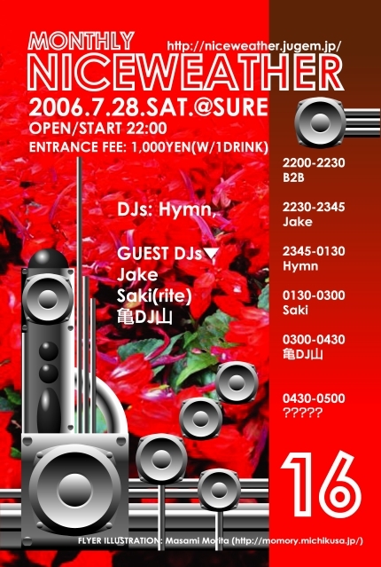 NICEWEATHER16、7月28日(土)開催です! 詳細は決まり次第更新します。 よろしくどうぞ どんなんかなぁ〜!