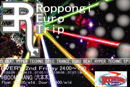 07/13 RET〜Roppongi Euro Trip〜(パライベ) <日時> 7月13日(金)24:00〜7:00 毎月第2金曜日開催(次,8/10...) <料金> Door:\1,500/w1d Flyer:\1,000/w1d Guest:\1,000/w1d←受付でmixiゲスト、と言って下さい♪ <ジャンル> ユーロビート,ハイパーテクノ,エピックトランス <mixiコミュ> http://mixi.jp/view_community.pl?id=1949128 <場所> 六本木BOOMERANG http://k.excite.co.jp/u/boomerang-vietti 東京都港区六本木3-15-24 森川ビル3F 六本木交差点方面の出口から地上へ交差点より、東京タワー方面に5分ぐらい進みま