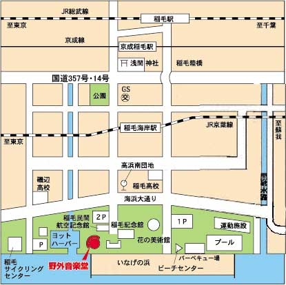 青い海と緑に囲まれた稲毛海浜公園内に、市民の音楽活動の場として本格的な野外コンサートができる野外音楽堂です。この野外音楽堂は、50人編成程度の楽団まで利用できるステージと控室があり、観客は1500人(椅子席500人・芝生席1000人)収容できます。またステージから徒歩3分で「いなげの浜」へ海水浴を、同施設内には「バーベキュー場」、「プール」も完備しています。 この恵まれた環境で開催される今回の「BEACH FREERAVE 2007」でこの夏最高の思い出を作ってください。 2007.07.29 (Sunday) OPEN/START:10:00〜17:00 at 稲毛海浜公園野