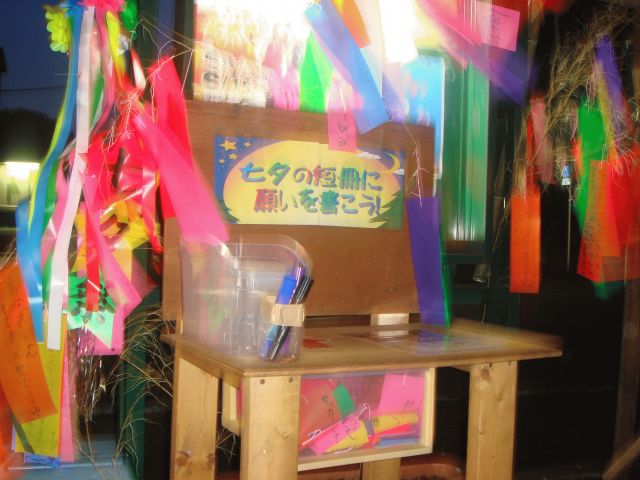 内容:商店街を通行していただくお客様に、短冊に願 い事を書いていただき、7月3日〜8日まで商店街に 飾ります。短冊を書いていただく期間は、6月25日〜 7日位。今年の短冊は、七夕スタッフにより鹿島神宮で祈願をしてきています。 その他にも、7日、8日は、各地域の団体による模擬 店や、習一小学校吹奏楽部の演奏、よさこいソーラン ハワイアンバンドの演奏、ゆかたでライブ(ライブバン ドの演奏)ゆかたでライブでは、御宿の民宿グループ の協力により、月の砂漠の砂が入っている綺麗な小瓶を 先着200名にプレゼントします。