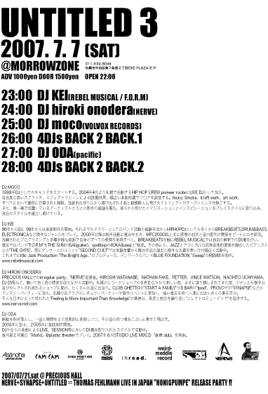 4DJのBACK 2BACKで参加するUNTITLEDの告知です。