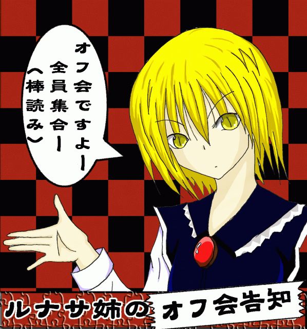 毎度おなじみですねwwwさて、第三回です!!! 今回も、多くの企画を考えております。 今回も、多くの方のご参加お待ちしております。 主犯@ノエイン □日程及び場所。 開催日:7/8 場 所:社会福祉総合センター三階第三会議室 時 間:未定(午前から) 参加費:500円 会場詳細:地下鉄西18丁目駅一番出口を出て右に進み、その先の交差点を渡らずに右にまがるとあります。すぐわかると思います。部屋は3階エレベーターおりて左手奥の第一会議室です。 □運営企画代表 ・代 表:noein ・副代表:はるてん さん ・担