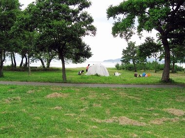 kayoちゃんからバトンもらったので、合宿しきりなおします。 場所は近江八幡市の「牧キャンプ場」を予定します。 ※牧水泳場隣の緑地公園です。 琵琶湖に面し水泳可、車で10分でダイエーで買い出しのできる予約不要の無料のキャンプ場です。 ※正確にはキャンプ可能な緑地公園です。 季節が季節なので水泳するもよし、湖畔のツーリングもよし、安土城跡等の史跡めぐりも楽しいです。 利用料は無料、予約も不要です。 駐車場が公園に比べ狭いので日中は駐車に苦労するかもしれません。 トイレはあります。 水場はありません。事