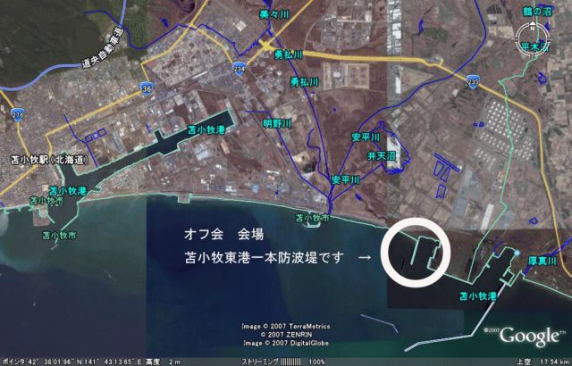 以下、管理人えび〜る氏よりのメッセージです↓ いよいよこのときがやってきましたぁ〜♪♪ まちに待ったオフ会を開催したいと思いますっ!! みんなで釣りでもしながらBBQしませんか??? 参加者、大募集中です!!! 詳細です!! 日時 平成19年7月8日(日) 場所 苫小牧東港(発電所、コールセンターの手前の 1本防波堤) 目印 目の前に赤白の荷揚げの鉄塔あり。石炭置き場の 向い側の防波堤です♪ 時間 とりあえずお昼のBBQに間に合えば何時でもOK