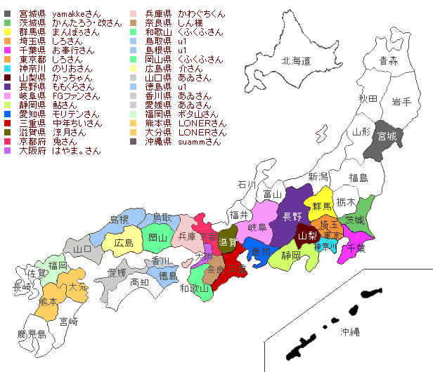 「全国一斉お城の日〜夏の陣」のお知らせです。 全国一斉お城の日って何?という方はルールを書いたこちらをご覧ください。↓ http://mixi.jp/view_bbs.pl?id=20056280 ・お城は7/29の 0:00〜 23:59 までに訪問されたもののみに限り報告してください。 ・報告は7/30 23:59まで有効です。 (写真は前回の結果です。) 1.城攻め結果図 2.ベストショット写真:FGファンさんの犬山城 3.国盗りモード