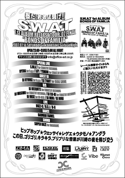 祭だ若者よ騒げSWAT 1st ALBUM "BONDS OF FAMILIA"RELEASE TOUR`07 FINAL in 神奈川2007年7月14日(土) 23:00-5:00