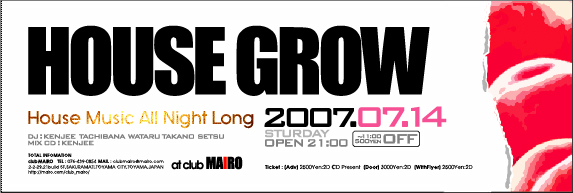 クラブマイロの人気レギュラーパーティーです。 なにげに一番お酒が飲まれているパーティーです♪ http://blog.livedoor.jp/mairo_housegrow/