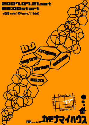 カモナマイハウス 2007/7/21(Sat)@音溶 22:00〜 door 1,000yen(w 1drink) DJ;KATAYAMA,NISHIKAWA,MOGITATE,SHIRAISI,KONDO 久しぶりにやります。定期的にやっちゃいます。 気軽に遊びに来て下さい。 よろしくです。