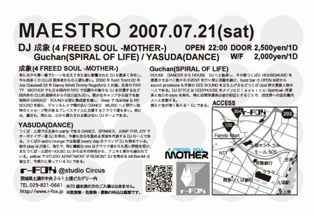 OPEN/22:00 ADV:¥1,500/w1d DOOR:¥2,000/w1d