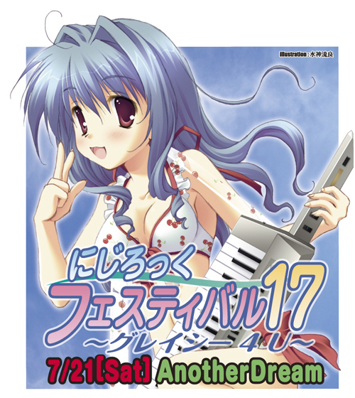 2007/07/21(sat) NIJIROCK FESTIVAL 17th 〜グレイシー 4U〜 千日前アナザードリーム Open 17:00 Start 17:30 Advance ¥1,500 Door ¥2,000 WithOut 1Drink ¥500 出演予定 17:00 開場 17:30 本番 17:30 〜 18:15 1 ゆらびの http://yurabino.web.fc2.com/ 18:15 〜 19:00 2 Kissing the Mirror http://www.youtube.com/watch?v=_9NQ9AXDfrc 19:00 〜 19:45 3 ヘブンズ同盟 http://www.mini4.info/heven/index.html 19:45 〜 20:30 4 メイプル♪シロップ 20:30 〜 21:15 5 ABSOLUTE AREA http://ion-pinkdrop.chu.jp/AA.ht