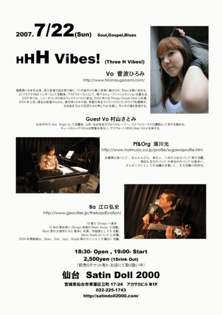 ¥2500(D別) 18:30開場 19:00開演 福島県いわき市から 福島のアレサ・フランクリンと謳われた 菅波ひろみさんのLiveです。。 共演は Vo菅波ひろみ Key須川光 Ba江口弘史 ゲストVO村山さとみ