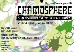CHAMOSPHEREとは…。 佐世保の音楽シーンにDJ/クリエイターを絡めて新しい形のPARTYを提案するプロジェクト。chaos(混沌)とatmosphere(空気)を合わせた造語。 CHAMOSPHEREはクリックハウス、ディープミニマルを軸にオーディエンスを本能のままに踊らせます。 非日常的な空間で深いとこまで音に浸ってみませんか?? 第一回目のCHAMOSPHEREはGUEST DJとして、アルバムVLOWをリリースしたばかりのSHIN NISHIMURA氏を迎えます。 アルバムVLOWの世界観を今のリアルなSHIN NISHIMURA氏のDJで体感して下さい!! 『Dazzle Puzzle presents SHIN N