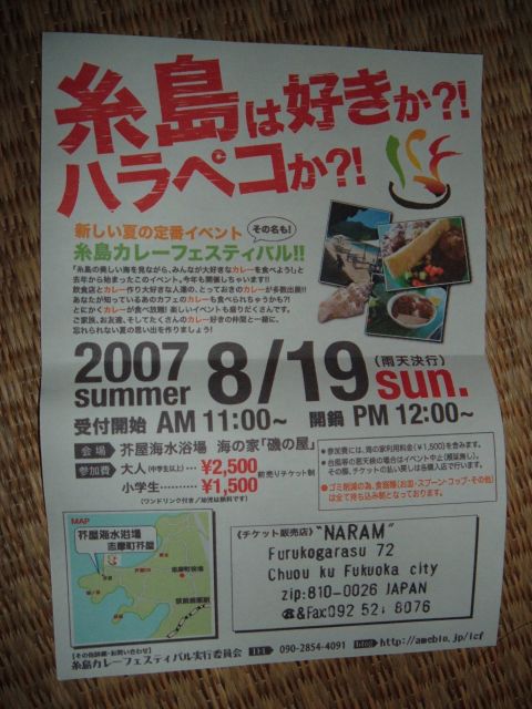 去年から始まったのですが、評判は カレー食べ放題で、去年より参加店も増え、色んな味が もちろん楽しめますぅ。 参加させる方は、myカップ、皿、スプーン等を用意していって 下さいね♪ 忘れたら、食べられんよ〜。 ココに去年同様、ライオンサーカス団のLIVE付きです。 頑張って食べまくりましょう!!!! 腹ぺこさん大集合