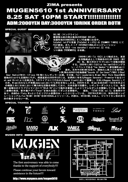 TICKET 3000yen/WITH FLYER 3500yen/DOOR 4000yen