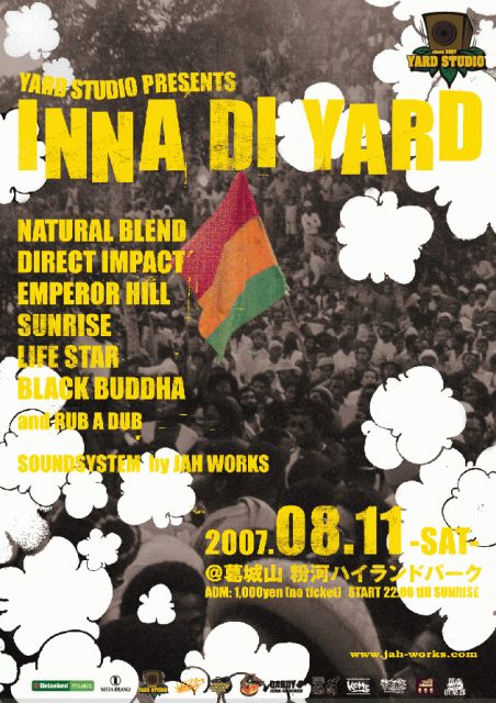 告知失礼します。 山の山頂がリアルジャマイカに!リアルヤードにようこそ!! 緑に囲まれた月明かりの下 鳴り響くサウンドシステム、ドミノに屋台!! 野外BAR,ジャークチキンにフィッシュ、ライス&ピースにパティ!ボナンチーズ等々。 流れる音楽はファウンデーション〜ルーツ〜ラバーズ〜ジョグリン〜ラバダブ♪ 一夜にしてすべてのリアルを体感できる野外ダンス INNA DI YARD 葛城山の新しいムーブメントの幕開けです!! ドミノトーナメントにラバダブの当日飛び込み参加大歓迎♪ 8月11日(sat) Yard Studio Presents ~INNA DI