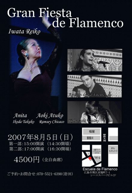 広島の踊り手岩田玲子主催のスタジオにてライブを開催します。 ゲスト舞踊手は 小林泰子、Anita、青木厚子 歌い手 イスラエル フェスナンデス ギター アグスティン デ ラ フェンテ ご興味のある方がおられましたら是非ご連絡下さい