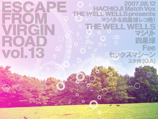 THE WELL WELLS presents - ESCAPE FROM VIRGINROAD vol.13 - 【マシリト&四星球 レコ発!】 ■THE WELL WELLS ■マシリト ■四星球 ■Fee ■セックスマシーン ■ユタ州(opening act) open 17:30 / start 18:00 adv. \1,500- / door \2,000-