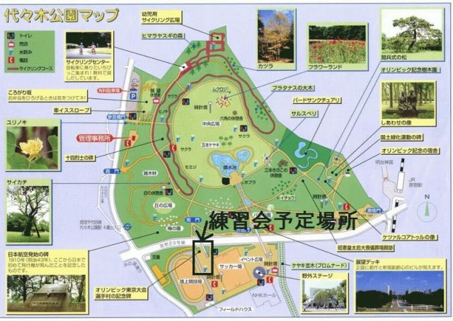 8月12日(日曜日)に原宿の代々木公園で第2回ディアボロ練習会&交流会&講習会を開催することになりました。(代々木公園での開催のため、雨天中止の場合は、8月19日に変更となります。) 代々木公園のサッカー場と陸上競技場の間の、オリンピック東京大会選手村の記念碑の前となりました。(コンクリート) 地図はこちら… http://map.yahoo.co.jp/pl?lat=35%2F39%2F51.448&lon=139%2F41%2F51.696&layer=0&ac=13113&p=%C2%E5%A1%B9%CC%DA%B8%F8%B1%E0&mode=map&size=s&type=static&pointer=on&sc=2 この練習会は、mixiに参加してい