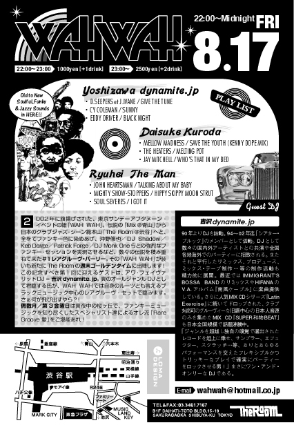 Das 23:00 ate as 05:00 da manha ,Nao se esqueca eh no Club Womb de Shibuya ! La mesmo onde o Marky ,Patife e Anderson Noise tocam quando vem pra ca .