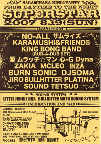 SOMAのルーツでもある相模原で幼馴染達と毎年やっているSUPER STAR野外。 道などうまく説明できないですけど・・・ 駅は小田急線相武台駅が近いですかね? 相模川の座架依橋(ザカイバシ)という橋の下ですんで。 まぁー詳細はメッセージくださいませ。 お昼からのビックパーティーです。 是非お気軽に。