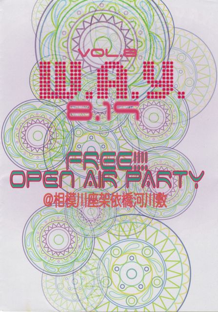 管理人様、告知失礼致します。 W.A.Y. presents Open Air Free!!! Party 2007.8.19.Sun Music Start/12:00〜(お昼からです。) Entrance Fee/Free!!! @神奈川県 相模川 座架依橋から約500m上流の広場 -DJs- YU-JI(W.A.Y./GRADO) YAMARI(W.A.Y.) PSYGA(W.A.Y./Infinity) O-TA(W.A.Y./Infinity) TAKISTUTA(W.A.Y.) HANAKING(W.A.Y.) SAKURA(GRADO/W.A.Y.) psychedelic trance party"W.A.Y." 2005年10月にスタートし、今回で8回目を迎えることができました。 今まで応援してくれた方への感謝の気持ちを