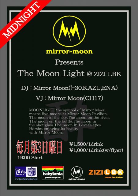 毎月第3日曜日の夜いえばミラームーン... このイベントも着々と定着しつつあるような無いような... 7月は番外編の七夕祭りと合わせて4回やりましたが... 8月は通常どおりで第3日曜日のみやりますのでよろしくお願いします! ※CH17は某アーティストのツアーでVJをする為に欠席です。