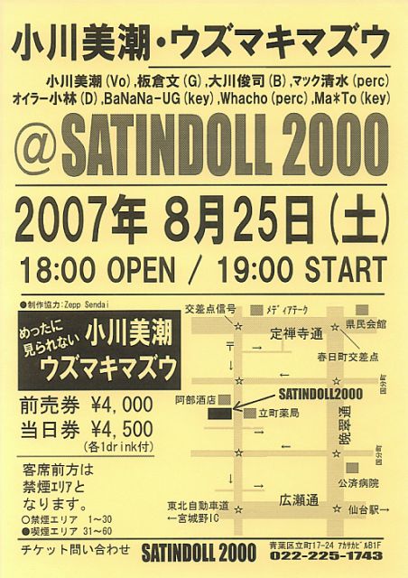 ²Æ¤Î¥¦¥º¥Þ¥¥Þ¥º¥¦¥Ä¥¢¡¼¤Ç¤¹¡£ ÀçÂæ¤Ï¥µ¥Æ¥ó¥É¡¼¥ë¡¢Ï²¹¾¤ÏSTREET MUSIC FESTA in £Î£Á£Í£É£Å¤Ç¤¹¡£ ÀçÂæ8/25¡ÊÅÚ¡Ë@SATINDOLL2000 18¡§00open~19:00start ÀÄÍÕ¶èΩĮ17-24¥¢¥«¥µ¥«¥Ó¥ëB1F 022-225-1743 ¥Á¥±¥Ã¥ÈÌ䤤¹ç¤ï¤»SATINDOLL2000¤Þ¤Ç Á°Çä·ô¡ï4,000 ÅöÆü·ô¡ï4,500 1¥É¥ê¥ó¥¯ÉÕ¤ Ê¡Å縩ϲ¹¾Ä®¡¡STREET MUSIC FESTA in £Î£Á£Í£É£Å ϲ¹¾¥Õ¥§¥¹£È£Ð¡¡http://www.t-yu-ki.com/smf/ ¡¡Ï²¹¾Ä®´Ñ¸÷¶¨²ñ http://www.namie-tta.jp/ ¡ÊÇñ¤Þ¤ë¾ì½ê¡Ë ¥á¥¤¥ó¥¹¥Æ¡¼¥¸ ¡¡£±£·¡§£³£°¡Á£±£¹¡§£³£° ¡¡Âç¿Í¡¦¹â¹»À¸£²£°£°£°±ß¡¡¡Ê¥ï¥ó