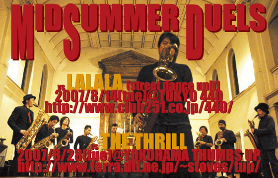 スリルインフォより 『横浜でのライヴが決定! 久しぶりの横浜ライヴ。 しかも場所はサムズアップだ。横浜ならではのムードに浸れること間違いない。そして共演の東京中低域は、メンバー全員がバリトン・サックスという凄い方々。お楽しみに! “THE THRILL & 東京中低域” 出演: THE THRILL、東京中低域 8/28(火) THUMBS UP 開場 18:30 / 開演 19:30 前売 ¥3,500 / 当日¥4,000』 だそうです! 久しぶりのThe Thrillになりますね♪ 楽しみですね♪