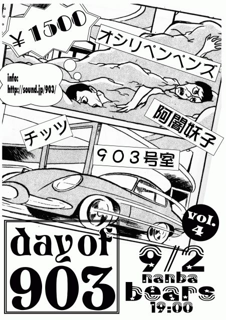 今年は、、、 9月2日になります、903の日vol.4 出演は ・チッツ ・オシリペンペンズ ・阿闇妖子 ・903号室 です 先着10名に特典有ります 受け付けにて「903」の一声で、前売りになります。 宜しくお願いします
