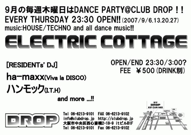 ELECTRIC COTTAGE ※9月毎週木曜日TECHNO/HOUSE PARTY
