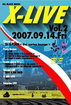 告知失礼致します。 X-LARGE大阪がプロデュースのイベントに、レペゼン大阪COCOLO BLANDも参加!! 大阪ストリートを代表する両グッドヴァイブスウェアブランドがお送りします☆ チェケラゥ!!!! 『X-LIVE Vol.2』 OPEN 22:00〜 DOOR:2000 LADY:1000 【LIVE】 BASI&ZIM BACK MAY 【Suprise LIVE】 SHAQLER 【DJ】 HARA-Q(COCOLO BLAND) DJ FULLMATIC(SCISSOR HANDS) DJ K-FLASH(the uprise lounge) DJ FLIP DJ WAXMAN(X-LARGE) DJ TAIZO(the uprise lounge) DJ ISAO(cafe continue)
