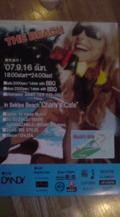 夏も終りの今週末、まだまだ遊び足りない方のために、関屋浜の海の家で今年最後のBBQイベントやります 主催は古町のバー、ダンディ音はレゲエ、アールビー、ブラジリアンハウスですレゲエダンスショーもありますBBQをつまみに、旨い酒とDJ達の海に似合う心地よいサウンドで楽しみましょう チケットは前売り2000円1D+BBQ、当日が2500円です その他詳細は協賛の古町ラバーズ、ブルーバナナ 万代シェイム 駅南ブッタバー、ドラゴンタイフーンや市内各所に設置のフライヤーを御覧下さい 皆