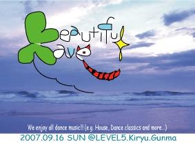 ※告知よろしくお願いします! ○Beautiful Wave -1st page- ○9/16 (Snuday) @LEVEL5 Kiryu Gunma ○OPEN 22:00 ○DJs Kattun , Tacosuke , SA ○Music House, Dance Classics, and more... ○STAFF Minami , Marek , Eri , Kazuto , ISSK , Kenji , Kazuya , and more... ○with flyer:1500yen -1drink and light meal- without:2000yen -1drink and light meal- Let's dance together!!! よろしくお願いします☆