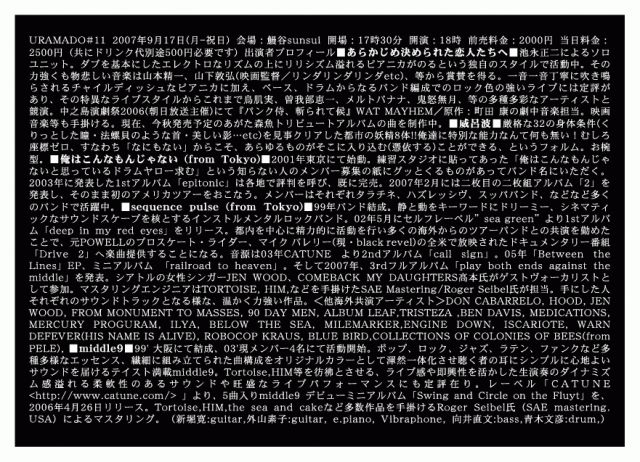 前売り4000円 当日4500円(共に1DRINK別途)