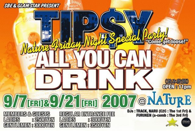 All u can drink party "TIP$Y" @ Nature(Roppongi, Tokyo)