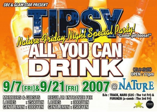 All u can drink party "TIP$Y" @ Nature(Roppongi, Tokyo)