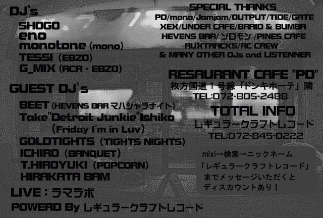 2007.9.22 (SAT) open 21:00 - close 5:00
