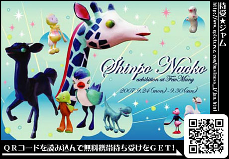 今週から始まった個展はしんぽうなおこさんによる「しんぽうなおこ exhibition at fewmany」です!独特の世界観を持つフィギュアを制作されていてFEWMANYのギャラリースペースにも沢山のフィギュアたちが並んでいます。その中でも一押しは「ぴょんきー」。リュックサックぐらいのサイズなのですが肩に引っかかるようになっていて、作家さんがいる間は背負ったりも出来るという事です!一緒に記念撮影などいかがでしょうか!?他にもフィギュアを撮った写真を使った物語なども展示されているので新宿にお立ち寄りの際はぜひぜひご来場下さい。お待ちして
