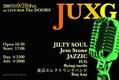 ★☆★☆★☆★☆★☆★☆★☆★☆★ 〜Jilty Soul主催ライブイベント 〜 『JUXG』 ■日時 9月28日(金) ■会場 初台 LIVE-BAR the DOORS http://www.livebar-the-doors.com/ ■OPEN 17:30〜START 18:00 ■前売 ¥2,000 / 当日 ¥2,500 / ■出演者 ・JILTY SOUL ・JAZZIC ・4UG ・フライングタートル ・東京エレクトリンクバンド ・Ray kay ★☆★☆★☆★☆★☆★☆★☆★☆★ 1人でも多くの人と一緒に楽しいイベントを作っていきたいので、友達や恋人を誘ってぜひぜひ遊びに来て下さい!