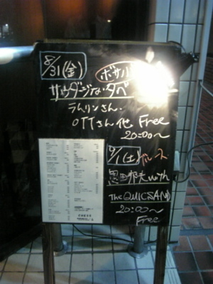 前回は夏休みスペシャル浴衣に、スイカ割りに、水ヨーヨーとお祭りか縁日かっつー楽しいイベントを催してくれたPesca Voceもちろん9月もLiveします うたものギタリストの新兵器も極上のトーンを響かせるでしょう すっかり涼しくなる頃でしょうが、Hotなナンバーでまた虎ノ門を興奮の坩堝へ誘ってくれるでしょう じゃーミナサン、カレンダーにメモのご用意をっ 3Stages(20:30 〜 21:30〜 22:30〜) ※天候等の諸事情により、時間が前後する可能性があります Music Charge \500 (20:00〜23: